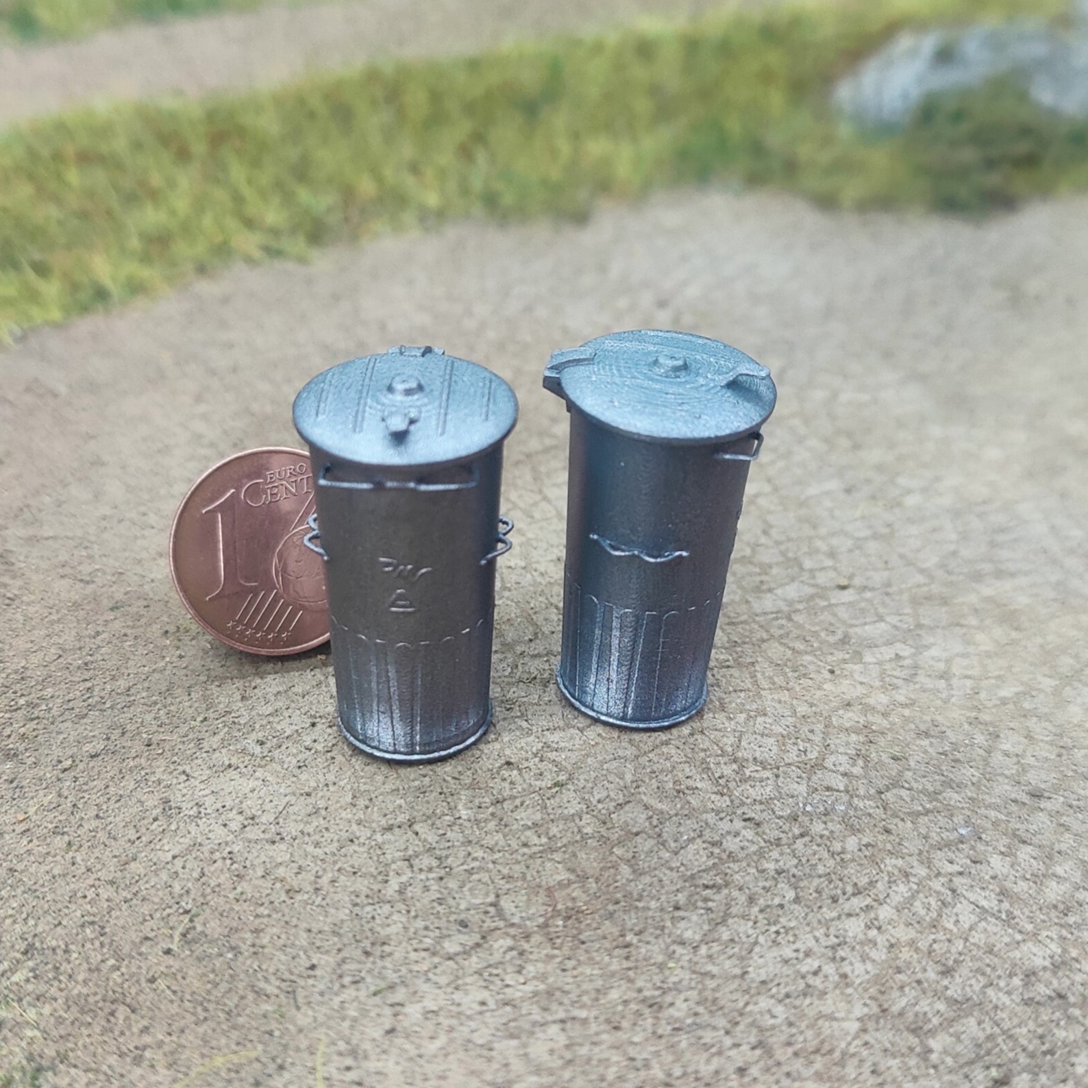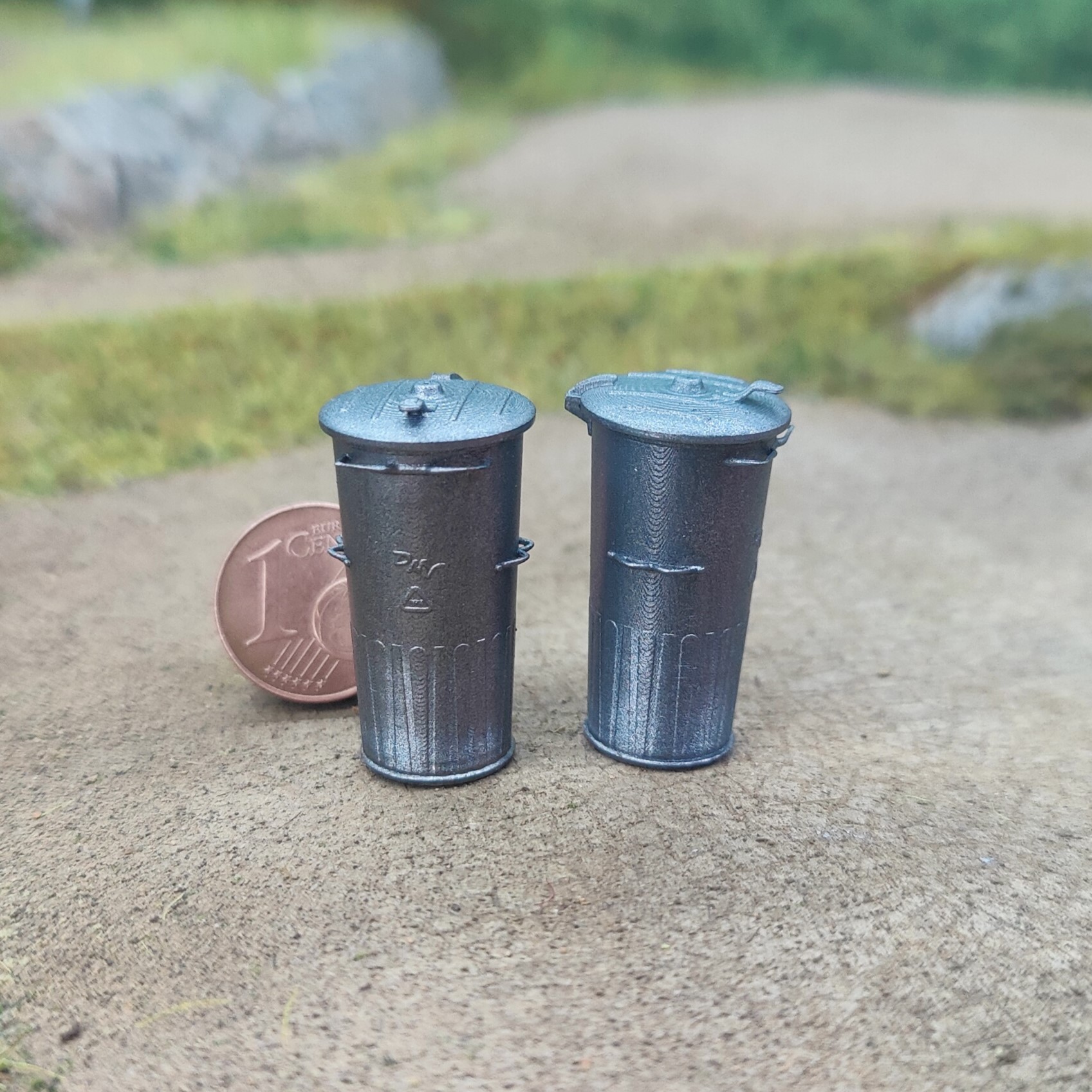 Das Set enthält 2 geschlossene Mülltonnen im DDR-Stil.