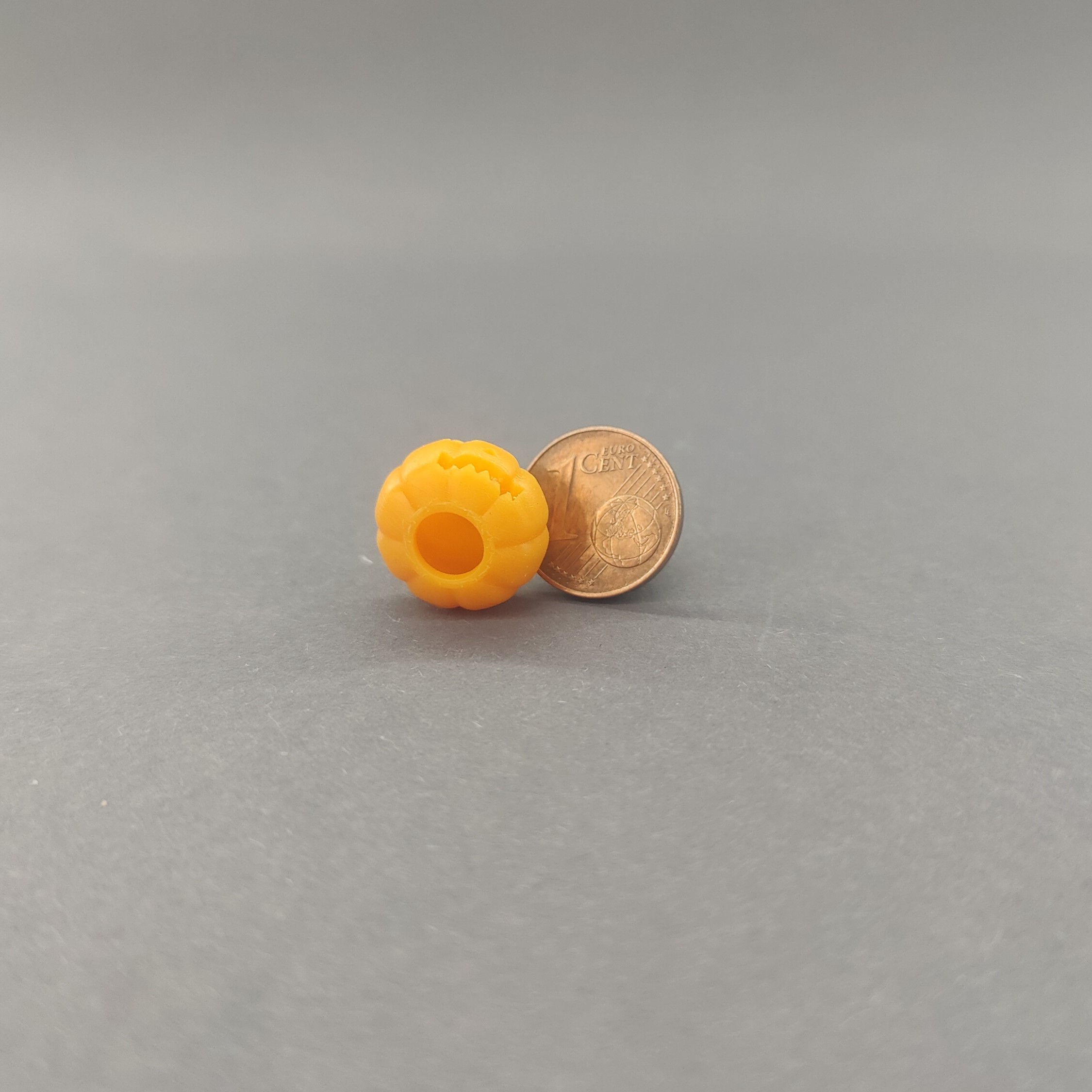 Halloween-Kürbis (Höhe ca. 1,29 cm, d=1,6 cm). Durch die Öffnung am Boden lässt sich eine Beleuchtung einbringen.