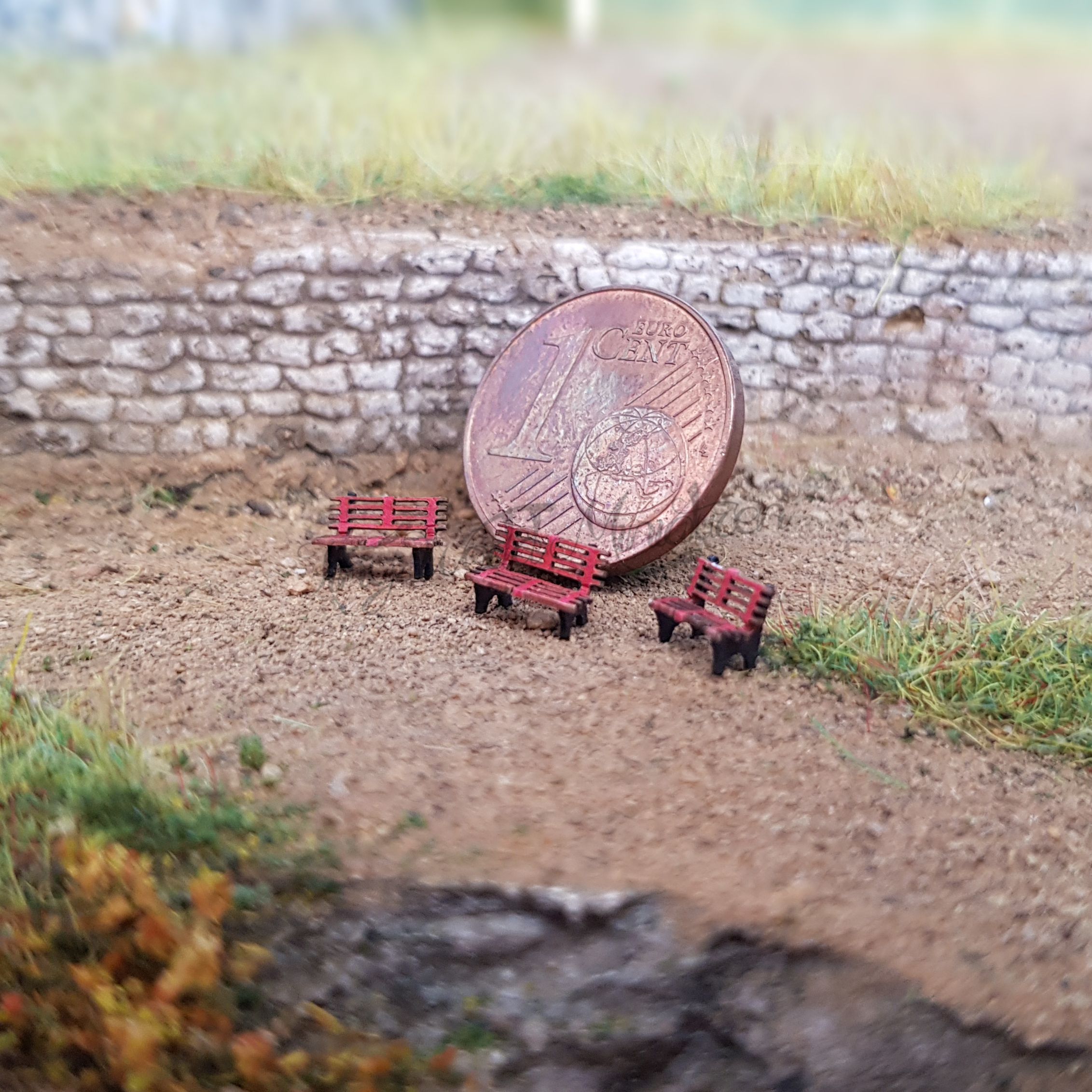 10 rote Parkbänke Z
