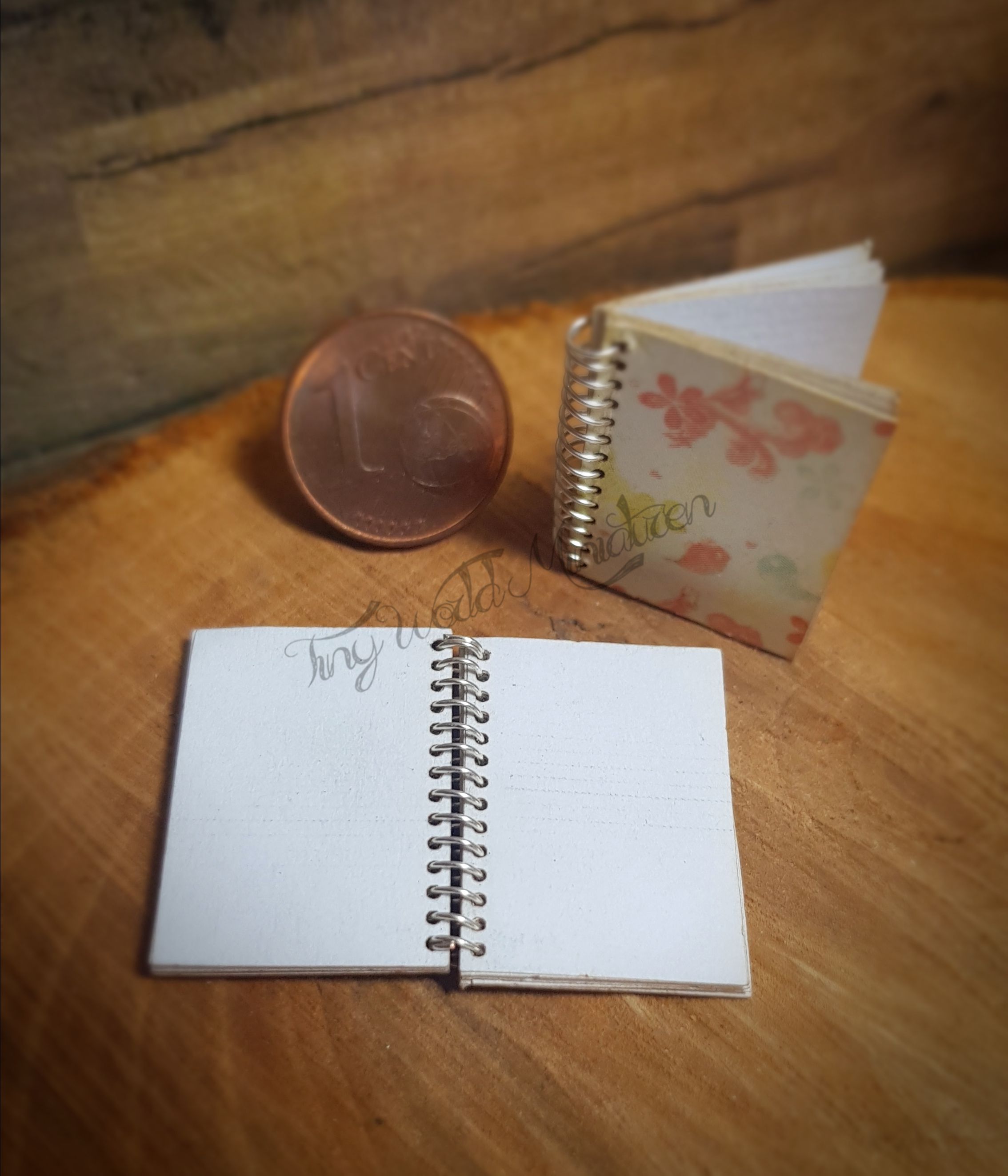 2 Ringbücher (ca. 2,5 x 1,8 cm) aufklappbar mit verschiedenfarbigen Einbänden.