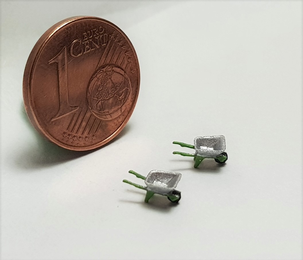 Das Set besteht aus 2 Schubkarren (ca. 7 x 4 mm).