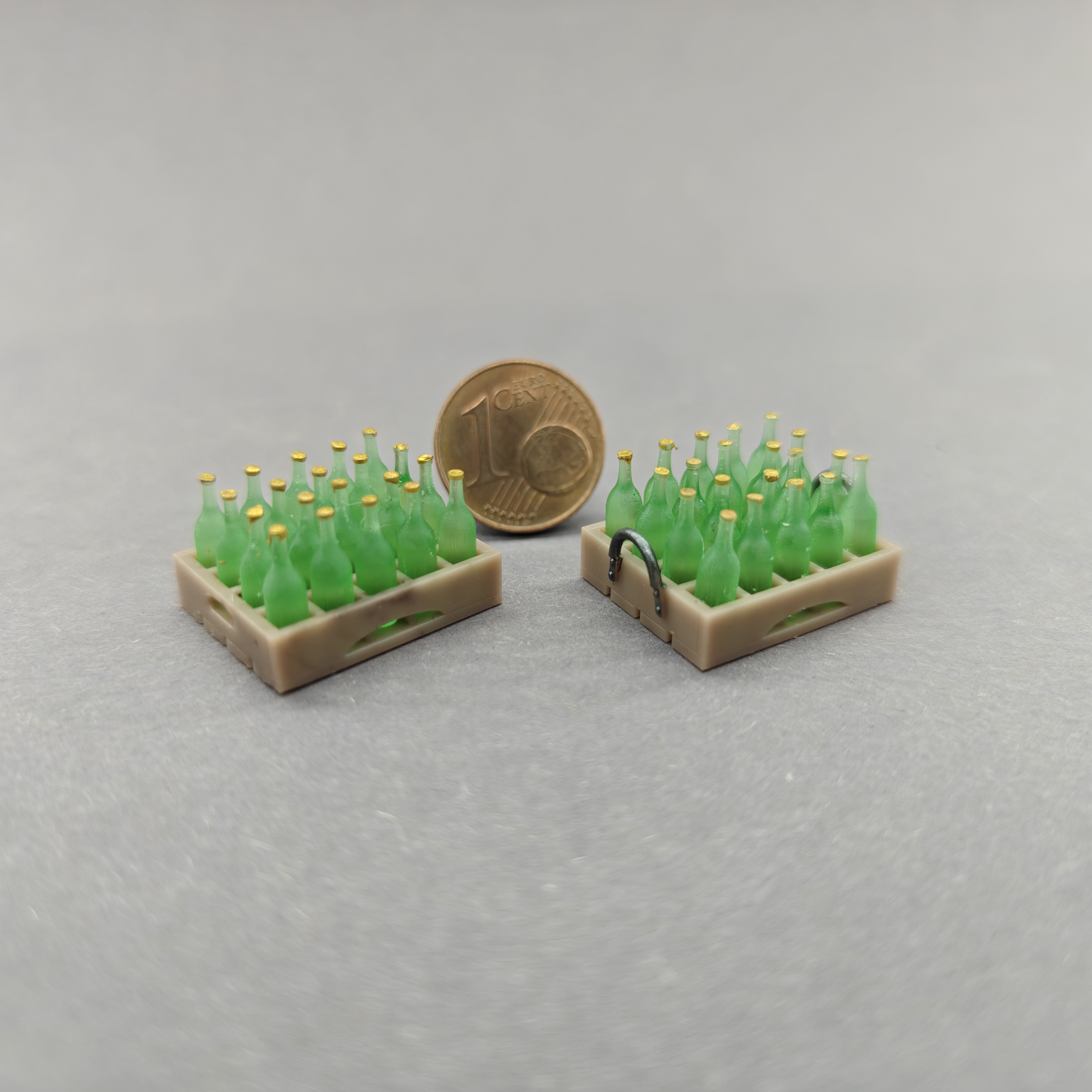 Beide Kästen sind gefüllt mit Flaschen, Farbwahl möglich.