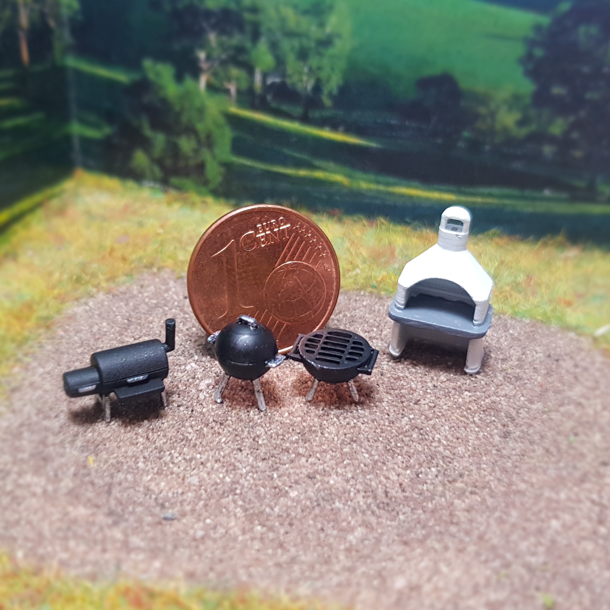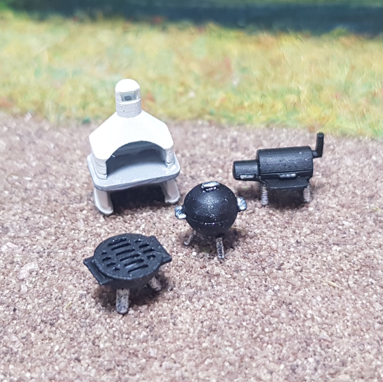 Das Set besteht aus einem Betongrill (ca. 13x7,5x5 mm), einem Smoker (ca. 8,2x7x4 mm),