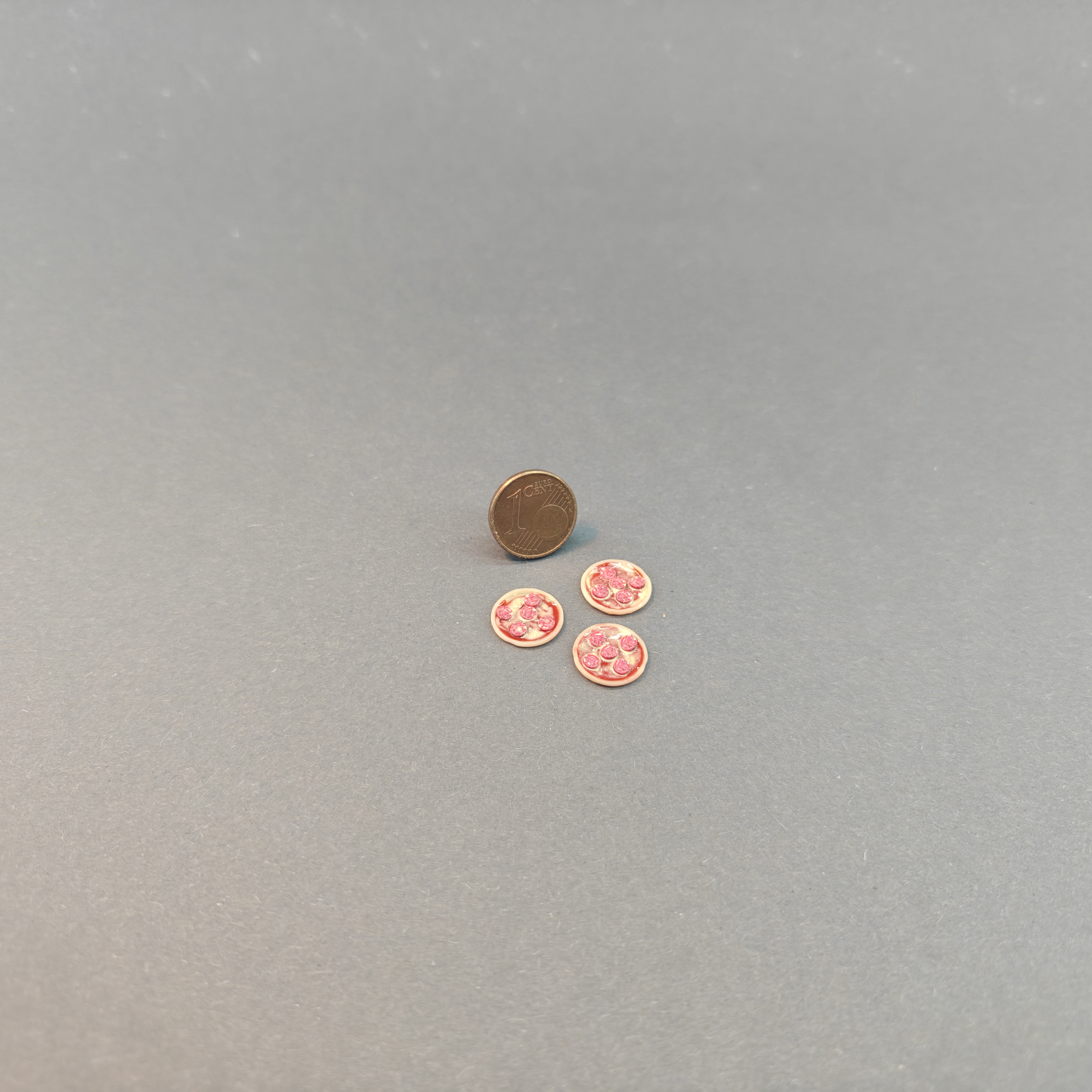 Das Set enthält 3 Salami-Pizzen mit einem Durchmesser von je ~12 mm.